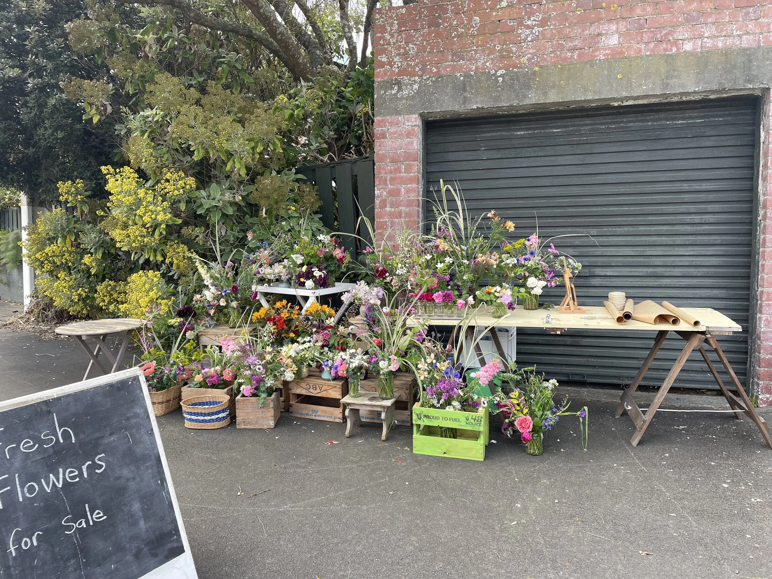 My friend Sophie and I decided to open up a flower stall in a garage on Karori Road. We’d both talked about growing and selling flowers for years, but never thought it’d be possible. For starters neither of us owns an enormous block of land. But then we decided to give it a go. We have 3 suburban gardens between us, full of flowers. Lots of different kinds of cottage garden flowers.