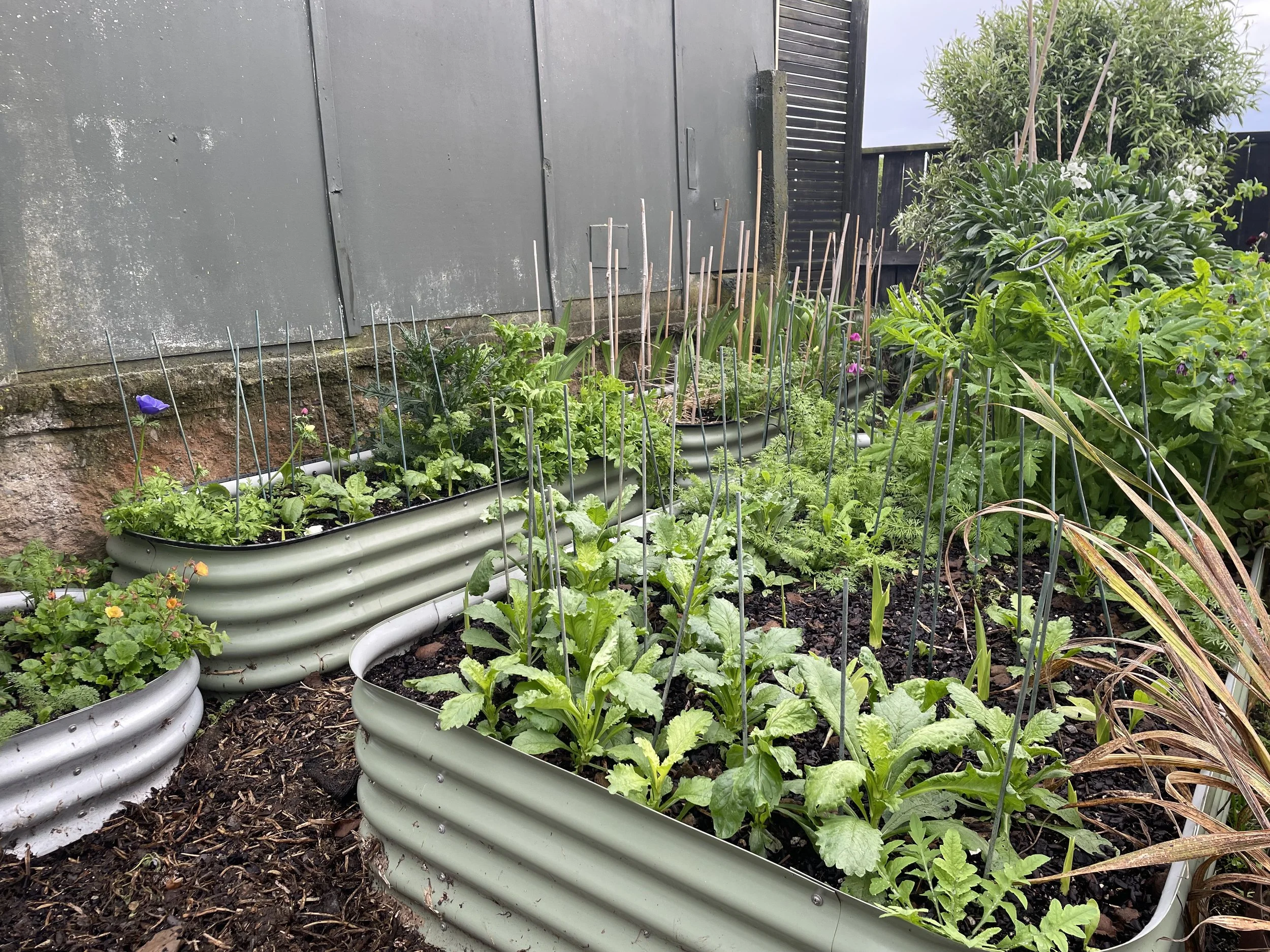 Bearded iris's and Larkspur seedlings in Paekākāriki.