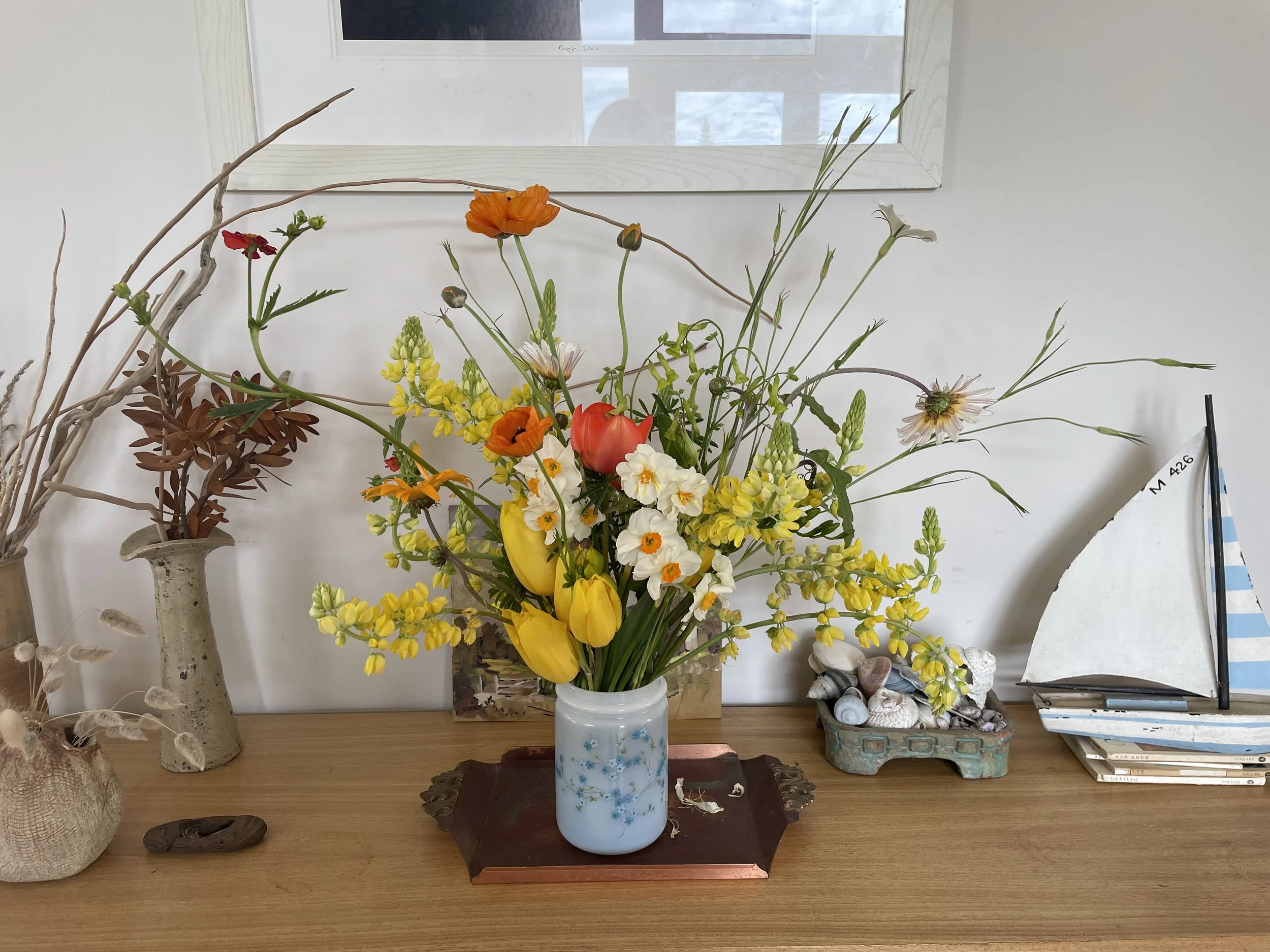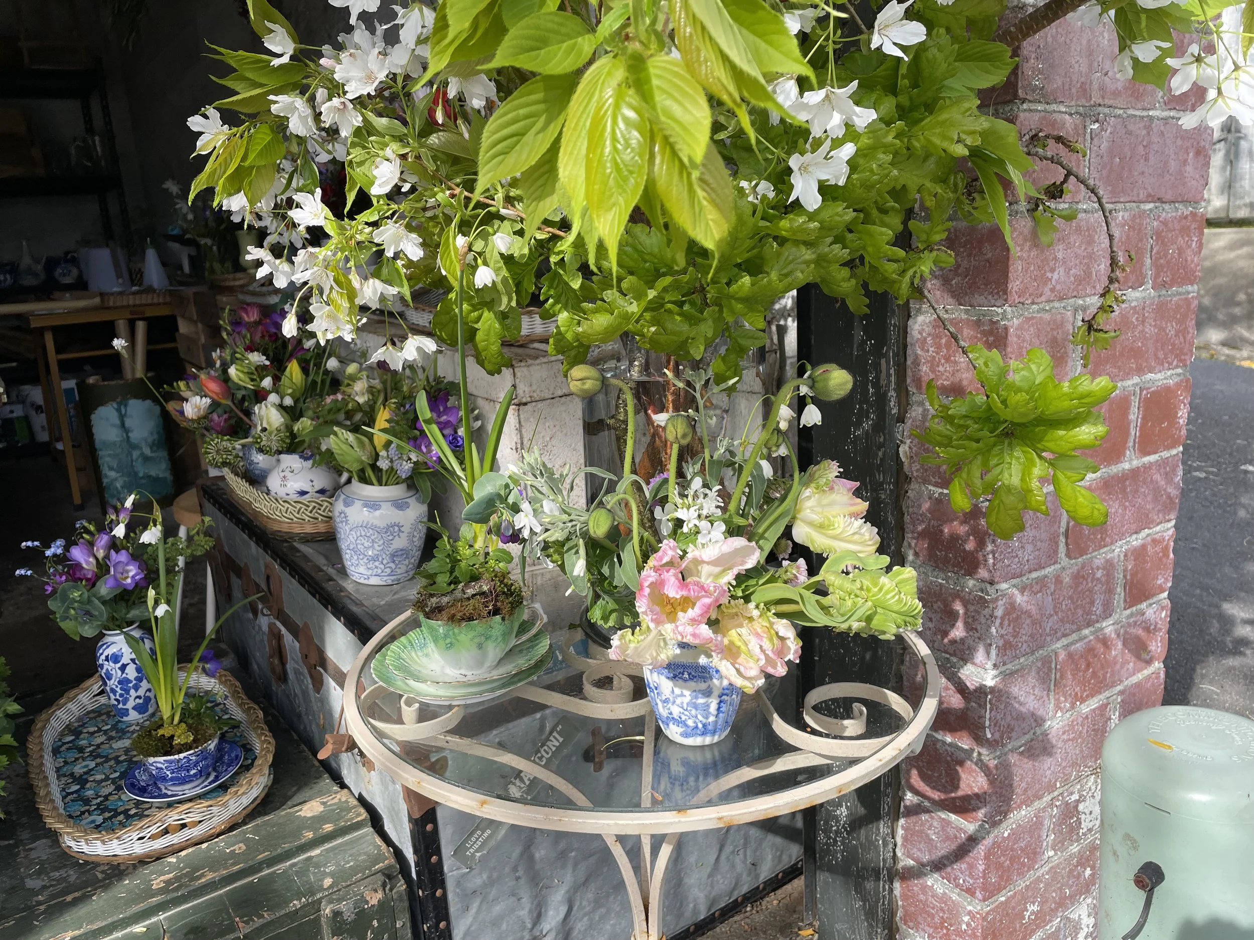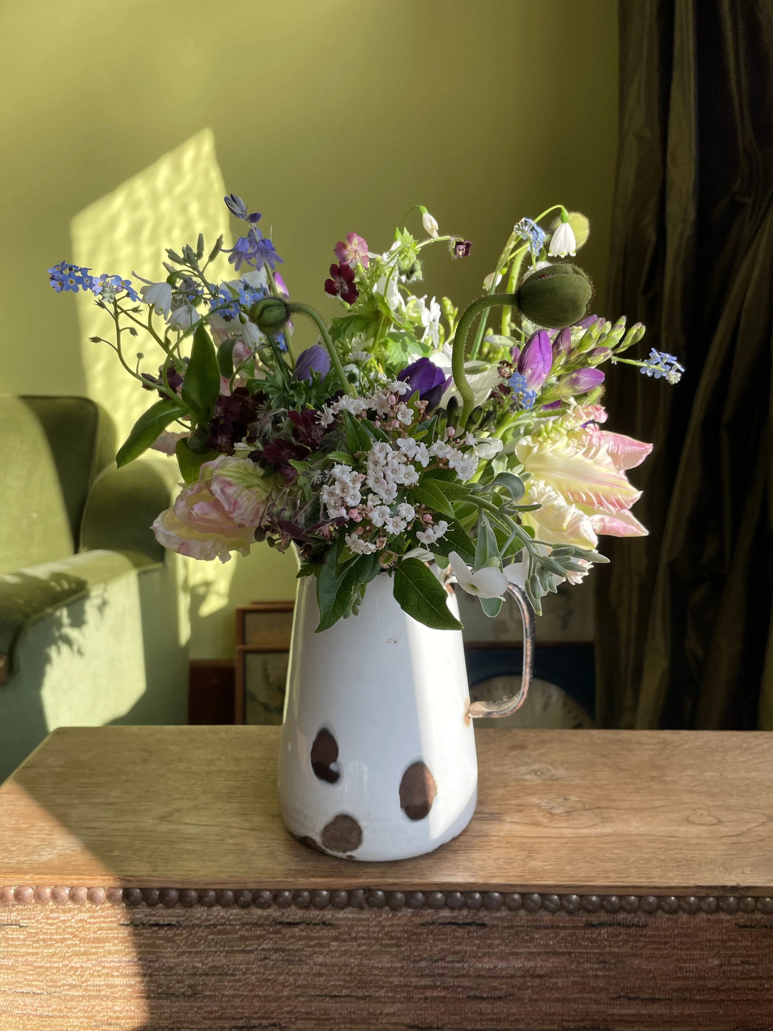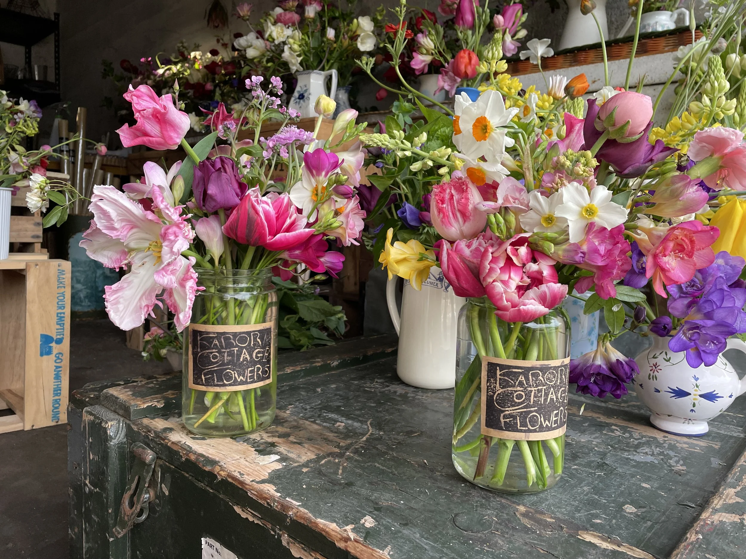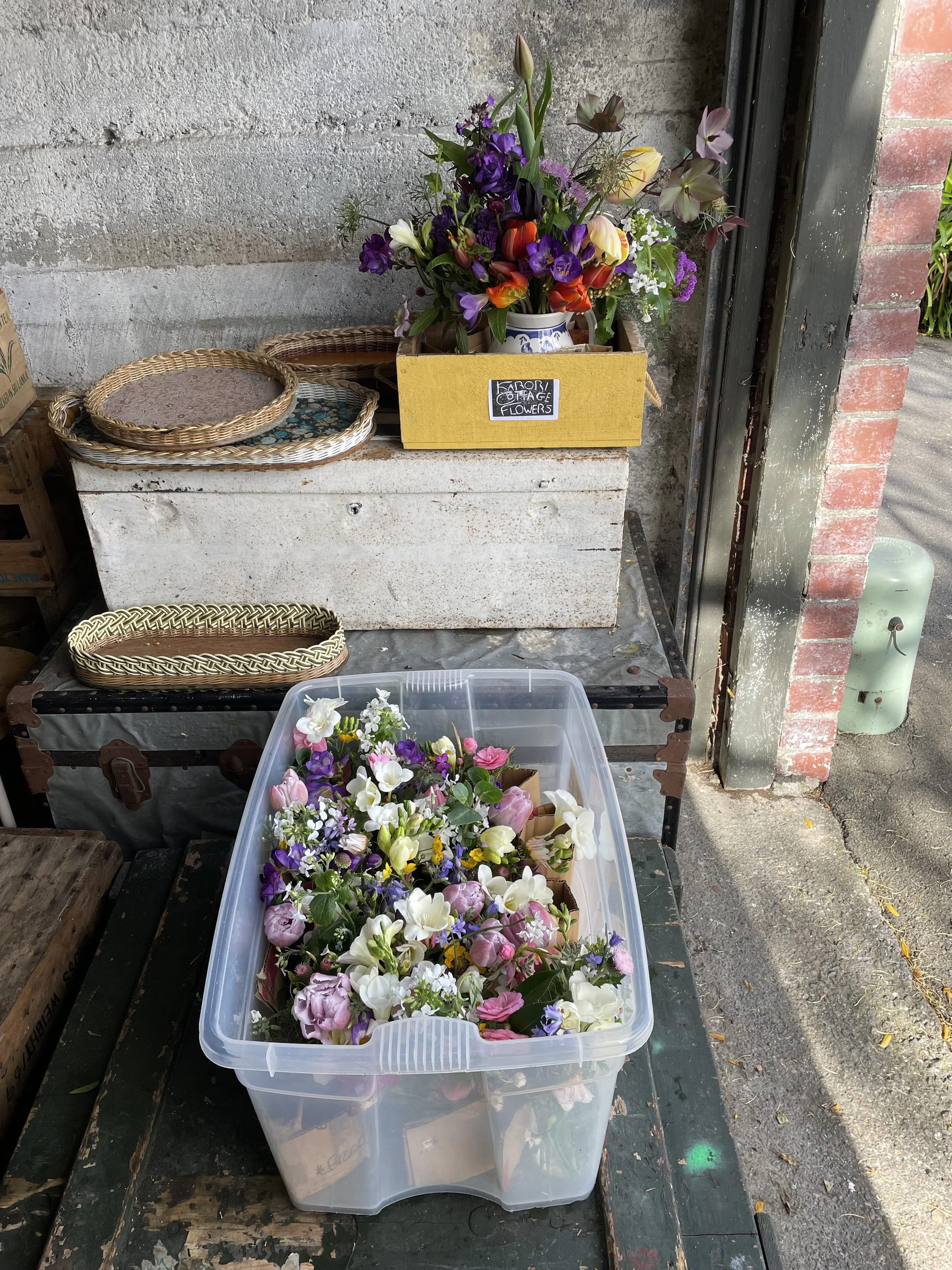 Sophie and I are finding our way with the flower shop. We think the future lies in subscription orders and events, while still opening the shop once a week and filling orders during the week. We don’t want to sell to florists or shops (only because we don’t have to). It does mean that sometimes we have flowers leftover after our Saturday shop, which we keep or give away. Our overheads are low. We don’t have to pay rent or lose 30% (or whatever the going rate is) off each bunch of flowers sold in someone else’s shop.
