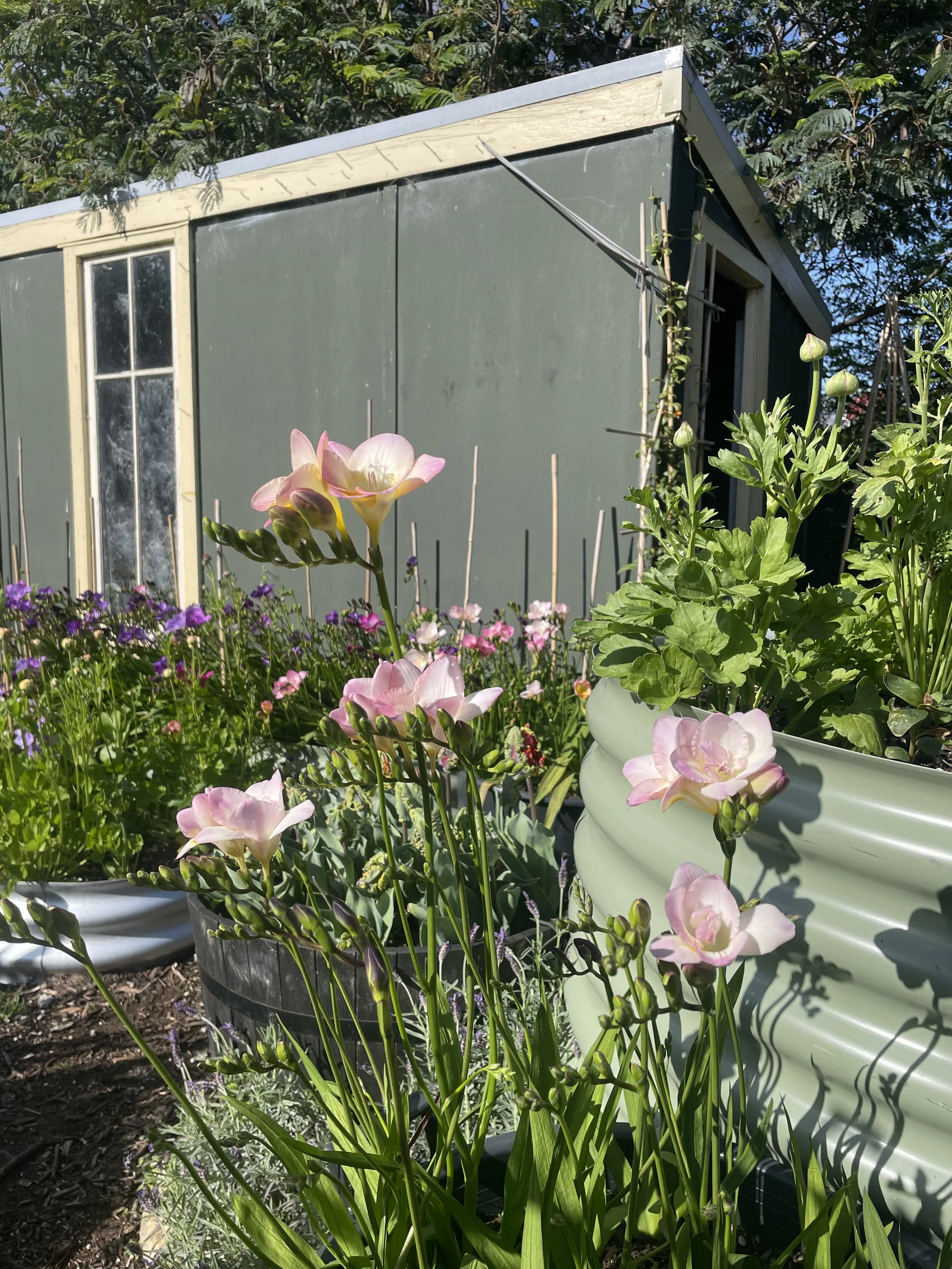 Freesias: I need to make supports for them next year so they don’t flop over.