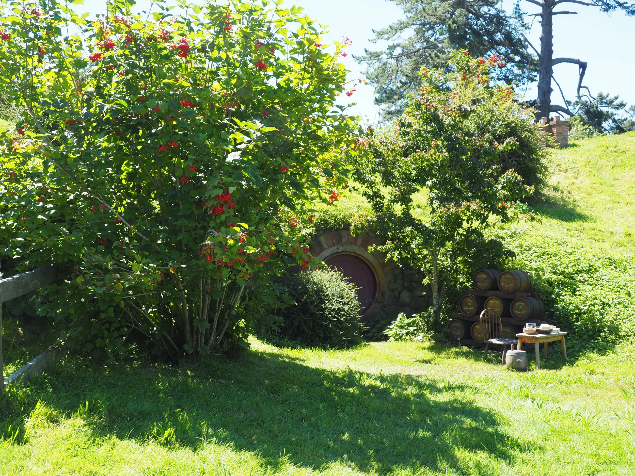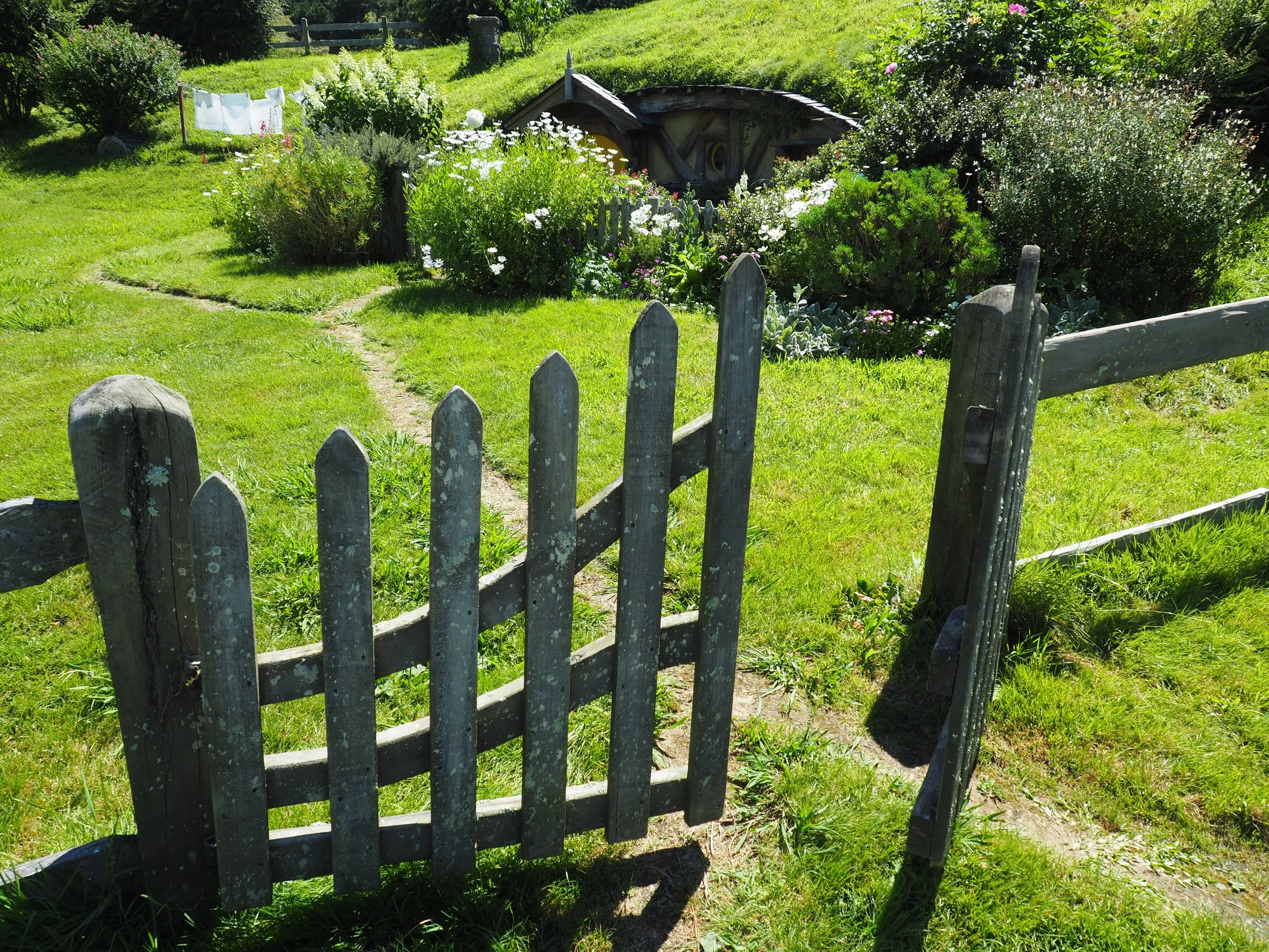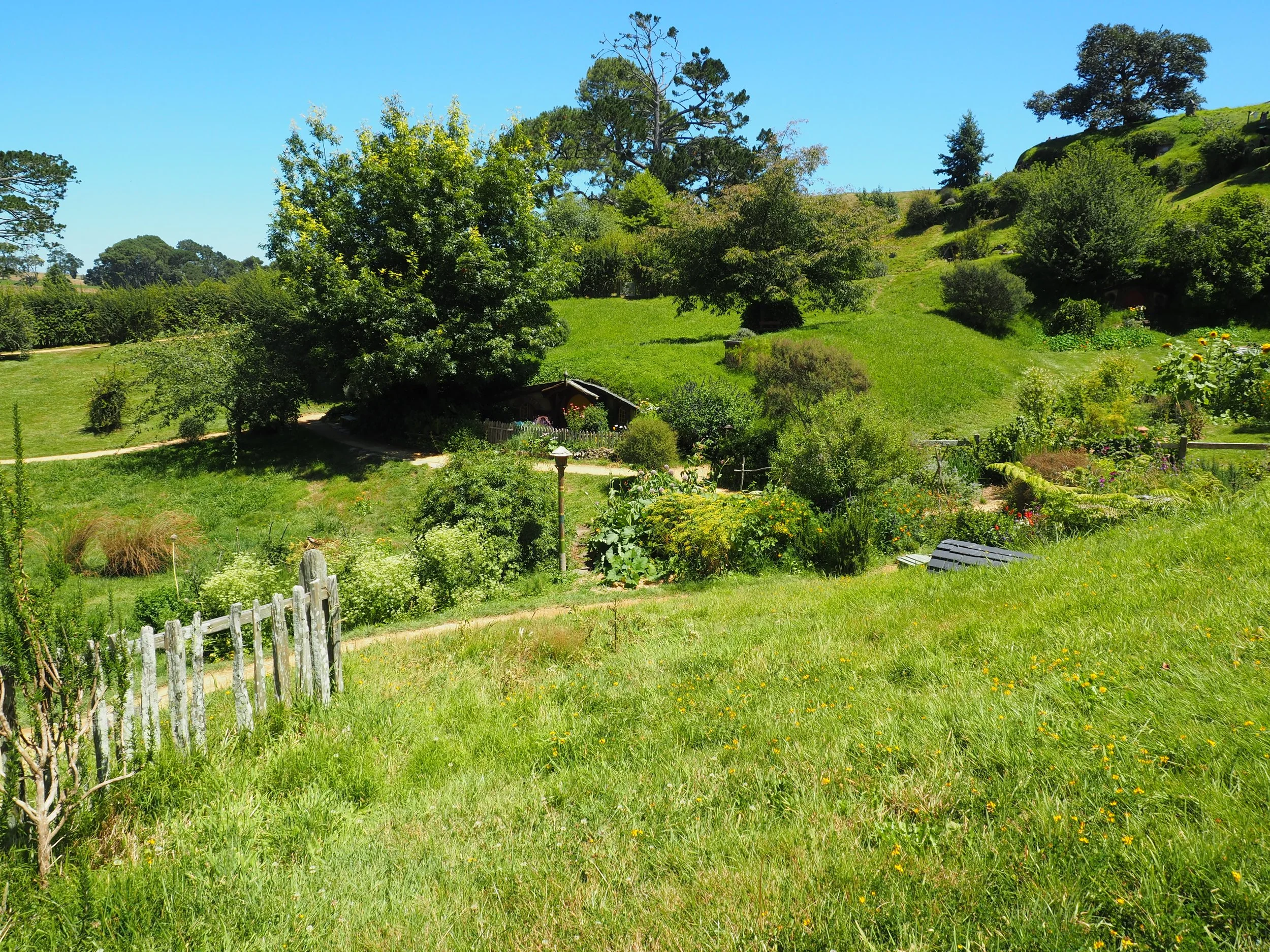 Like I said, this garden was a film set but now it’s just a garden that’s gardened. I used to live in a nearby town as a kid, so the rolling hills and big skies were familiar. This place is called Hobbiton. The setting for the ‘The Shire’, the hobbit village, in the movie ‘Lord of the Rings’. It’s in Matamata in the Waikato.