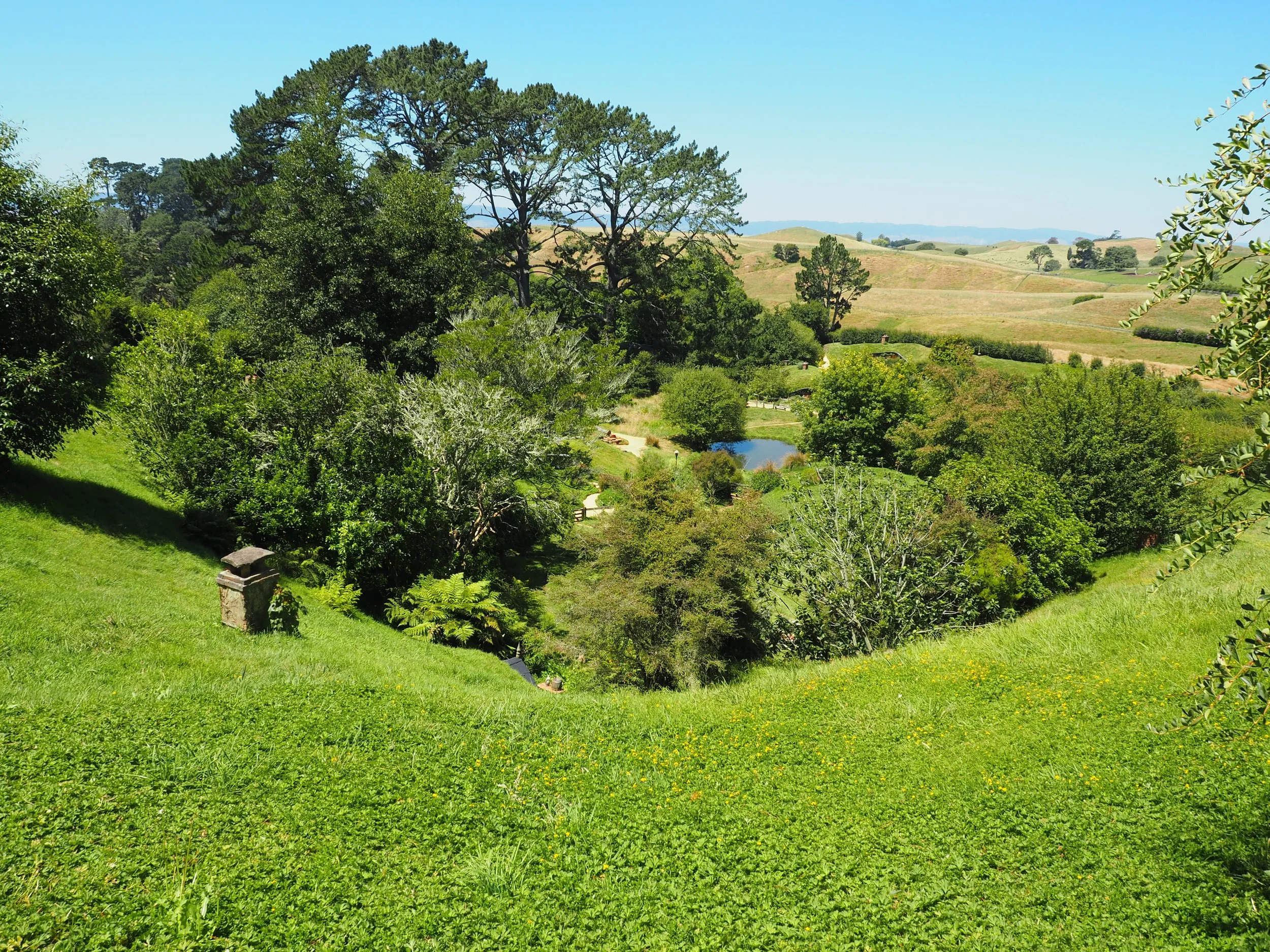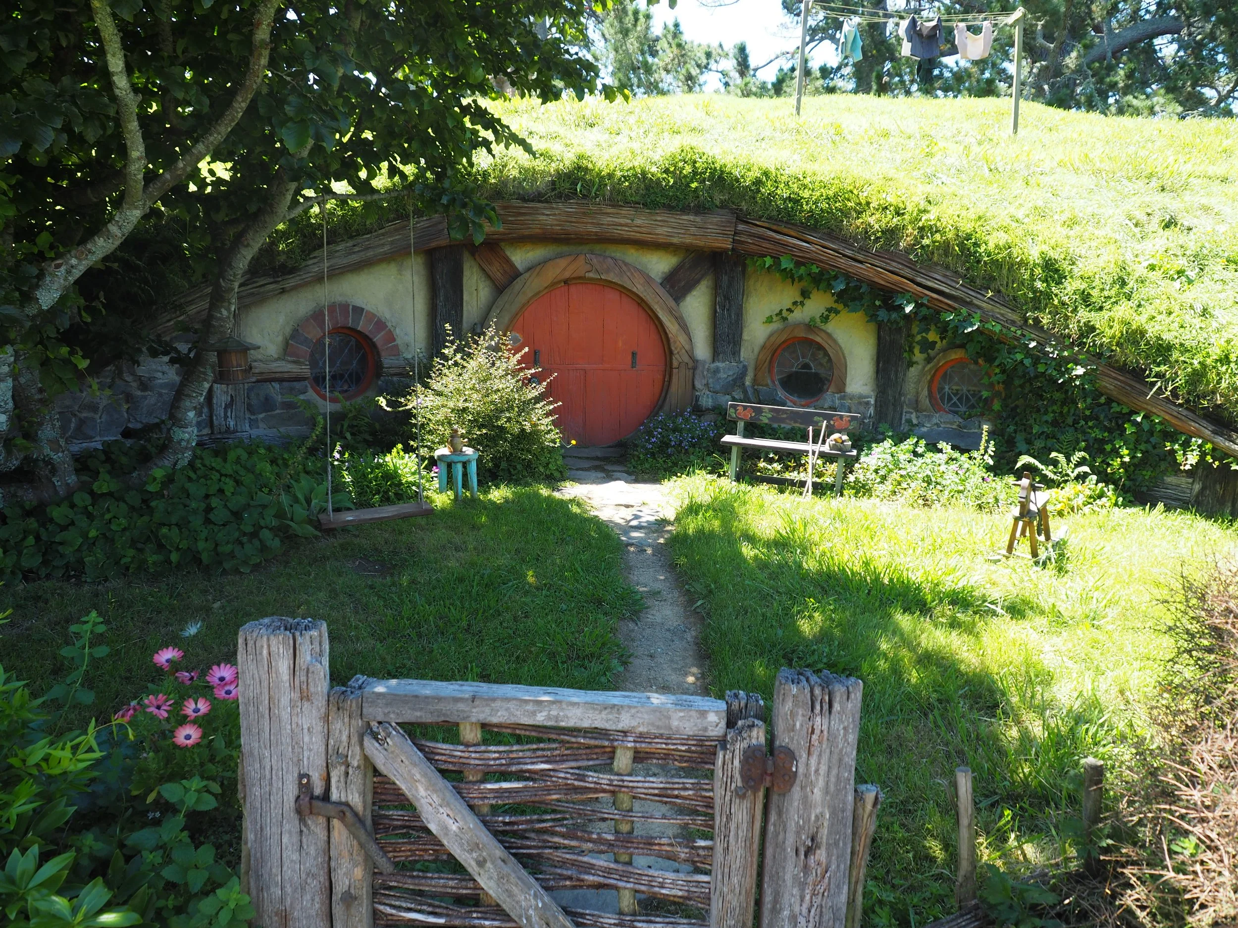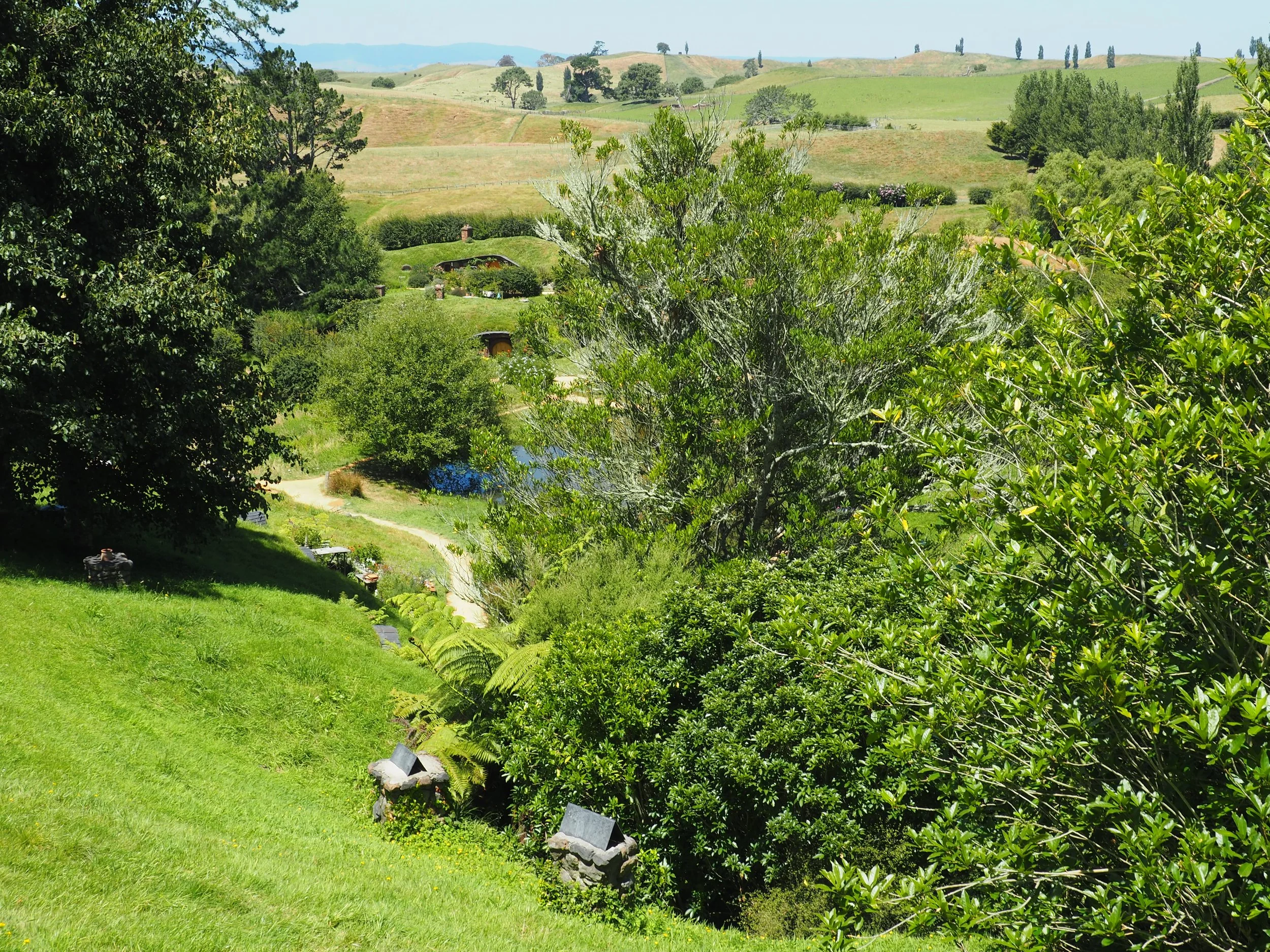 Like I said, this garden was a film set but now it’s just a garden that’s gardened. I used to live in a nearby town as a kid, so the rolling hills and big skies were familiar. This place is called Hobbiton. The setting for the ‘The Shire’, the hobbit village, in the movie ‘Lord of the Rings’. It’s in Matamata in the Waikato.