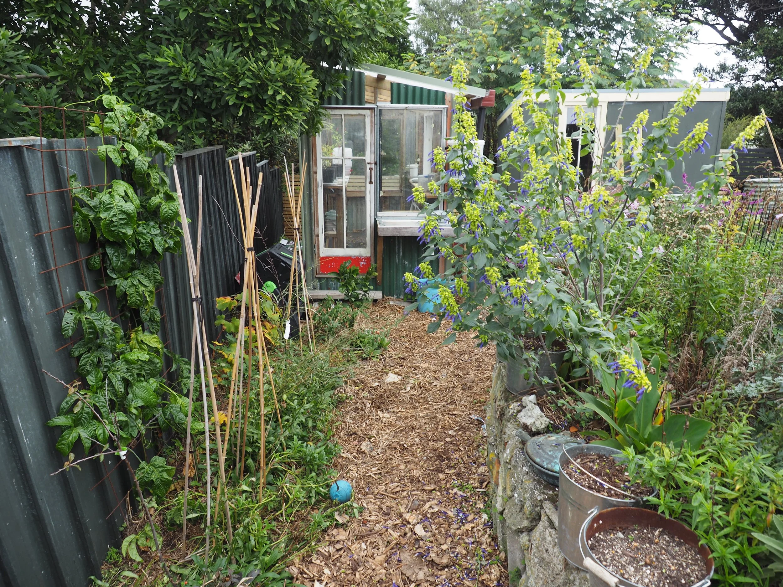 My new garden is almost a blank canvas. It has several pohutakawa trees (in various sizes) at the front and nothing out the back (apart from a few leggy lavenders). The garden, like the Wellington garden, is long and narrow, but it gets a lot more sun. And I mean a lot. Like the Wellington garden it gets a fair bit of wind, (although the northerly here is salt-laden which is really hard on unprotected plants). I have four big challenges: the dogs, the sandy soil, the northerly wind and the weeds. I have never had to battle so many pernicious weeds. For the first time ever I’ve bought glyphosate weed killer (although it’s the labour intensive kind that you paint on individual stems).
