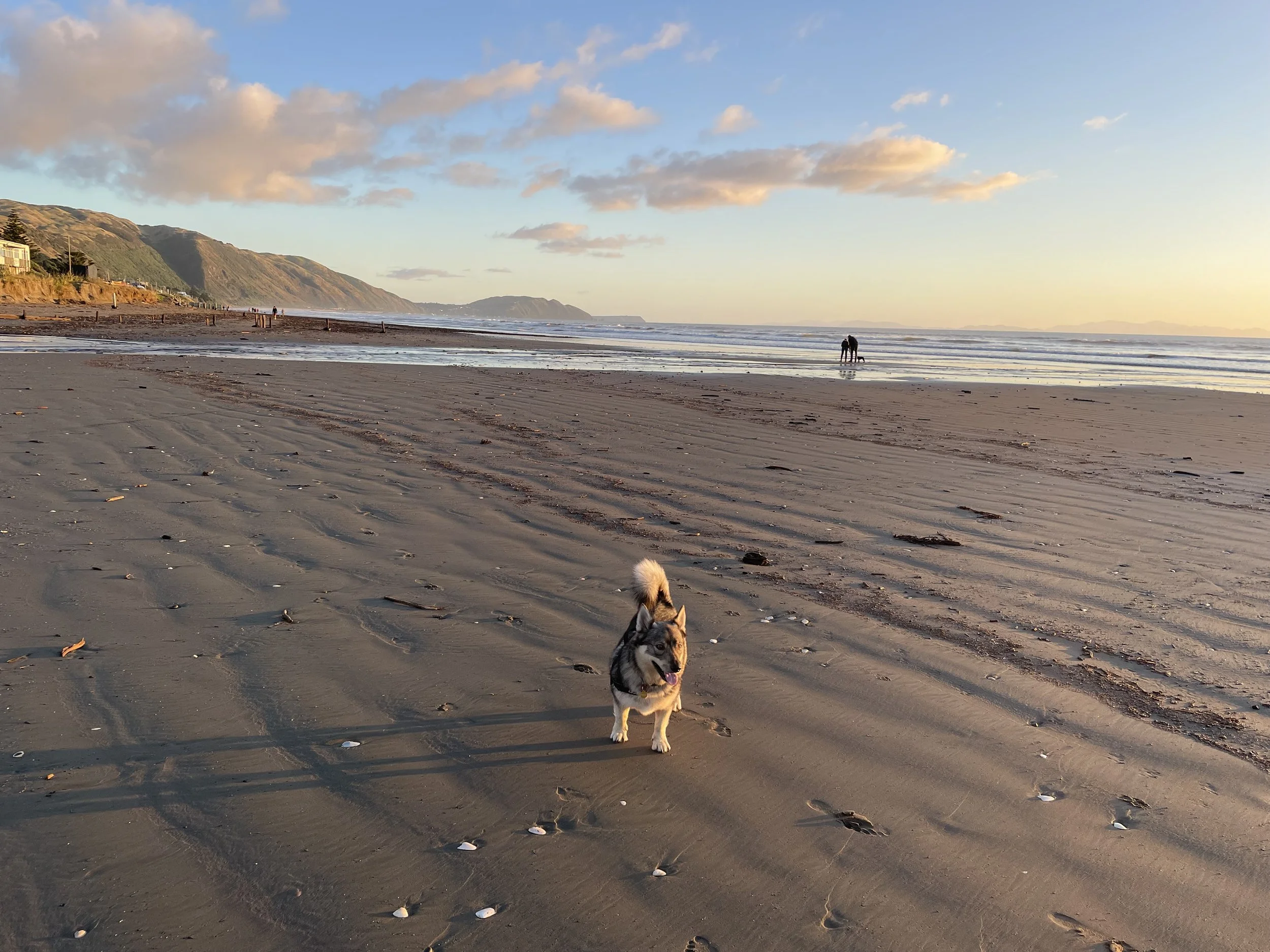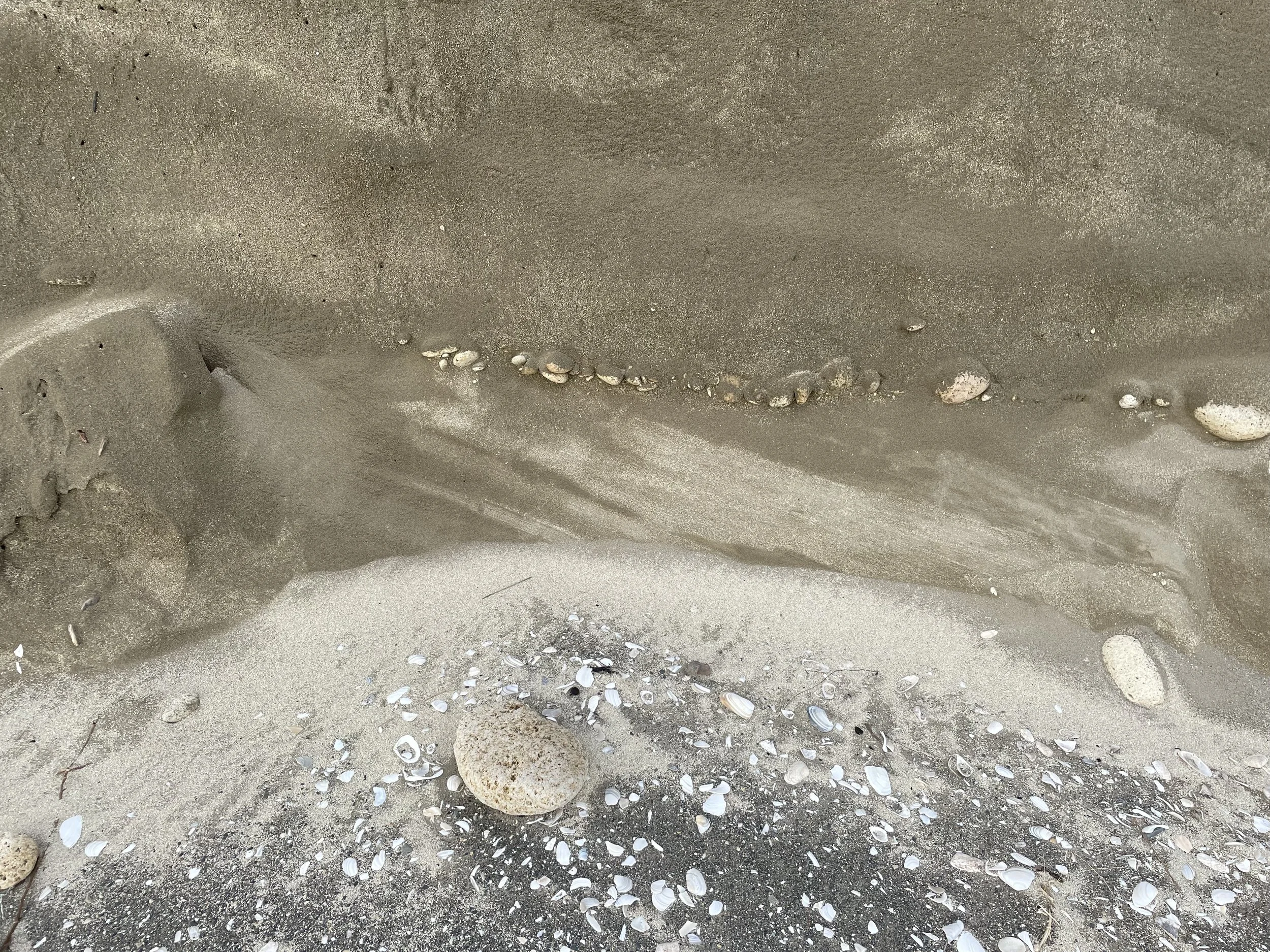 The first thing you need to know is that the beach isn’t a shelly beach. Sure there are shells, but they’re scattered like a handful of seeds thrown far and wide, and most of them are flat. The recent storms have brought a lot of new shells to the beach. There are lots of grey cone shaped ones and silver dollars (which aren’t really shells) and long orangey curly ones. There are also a few deep piles of white shells up by the sand hills. I love these in particular. They glow in the early morning and in the evening when the sun touches them. There are quite a few piles, but to say they’re plentiful is a gross exaggeration. It’s also clear that these piles of white shells are from the middens in the sand hills, so this makes them a little bit more special, a little bit more mysterious. They are portals to the past.