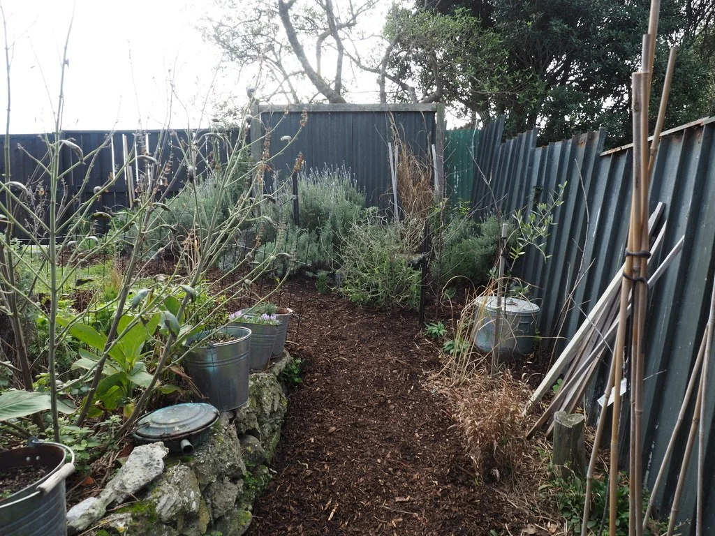 I really like ‘Arborist Chip’ as a mulch. It’s the best mulch I’ve used. It’s munched up branches, twigs and leaves. All of the small bits rot down quickly and provide nutrition for the soil. The bigger stuff takes longer to rot down. It’s heavy and doesn’t blow away. I can use it on sloping paths and beds. If I spread it thickly enough it suppresses the weeds.