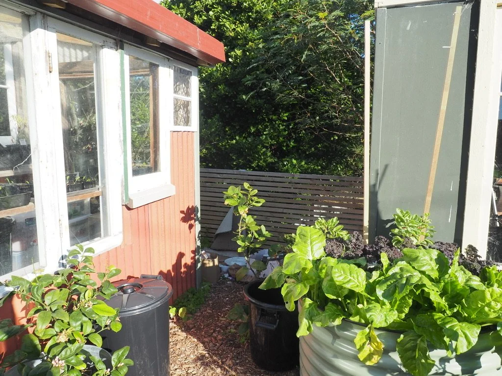 The path to the ugly area behind the greenhouse.