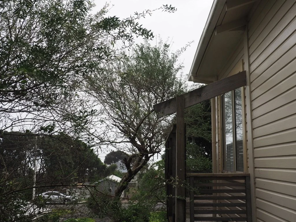 The first flowering tree I came across isn’t technically mine. It’s in my neighbours garden but it overhangs my shed. It’s a brush wattle and is considered by Wellington Regional Council to be an invasive weed. I’ve come to believe that some of the plants that end up on the naughty list aren’t so bad. Some of them, in the right situation, do more good than harm. I think bush wattle is one of them.