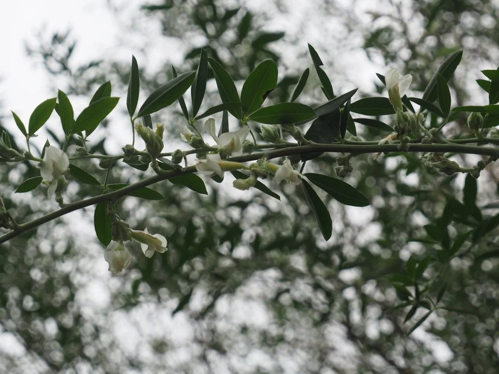 I did a bit of research and found some interesting stuff. These are definitely good trees for small gardens. They’re also called tagasaste, Chamaecytisus palmensis, and belong to the Fabaceae family (the legume family). They have pretty white flowers (shaped like sweet peas) in winter, which are loved by birds and bees. They’re fast growing and short lived. They can grow up to 4 metres tall and have a tendency to get a bit leggy. It’s best to prune them back by a metre when get to 2 metres in height, that way you’ll get a sturdy tree. According to a dog walker I was bumped into yesterday tree lucernes make a great shelter belt. She said they don’t block out the sun. They’re commonly grown by fruit growers (they bring in the bees) and farmers (great food for stock). They also make excellent firewood and burn hot. They hate having wet feet so my sandy soil is perfect.