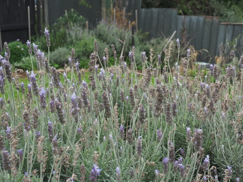 This variety of lavender flowers all year round, Lavandula denata VAR. Candicans.