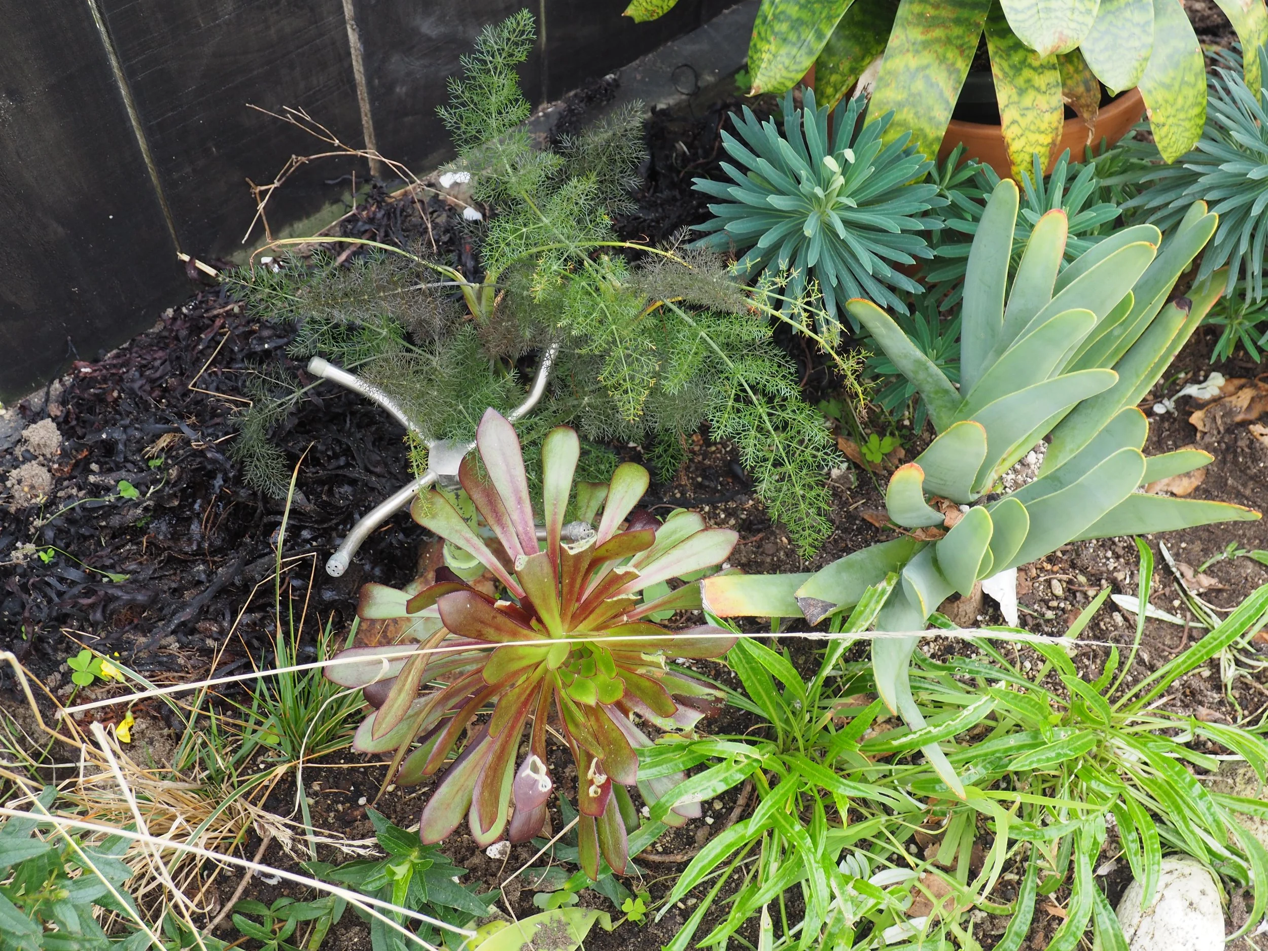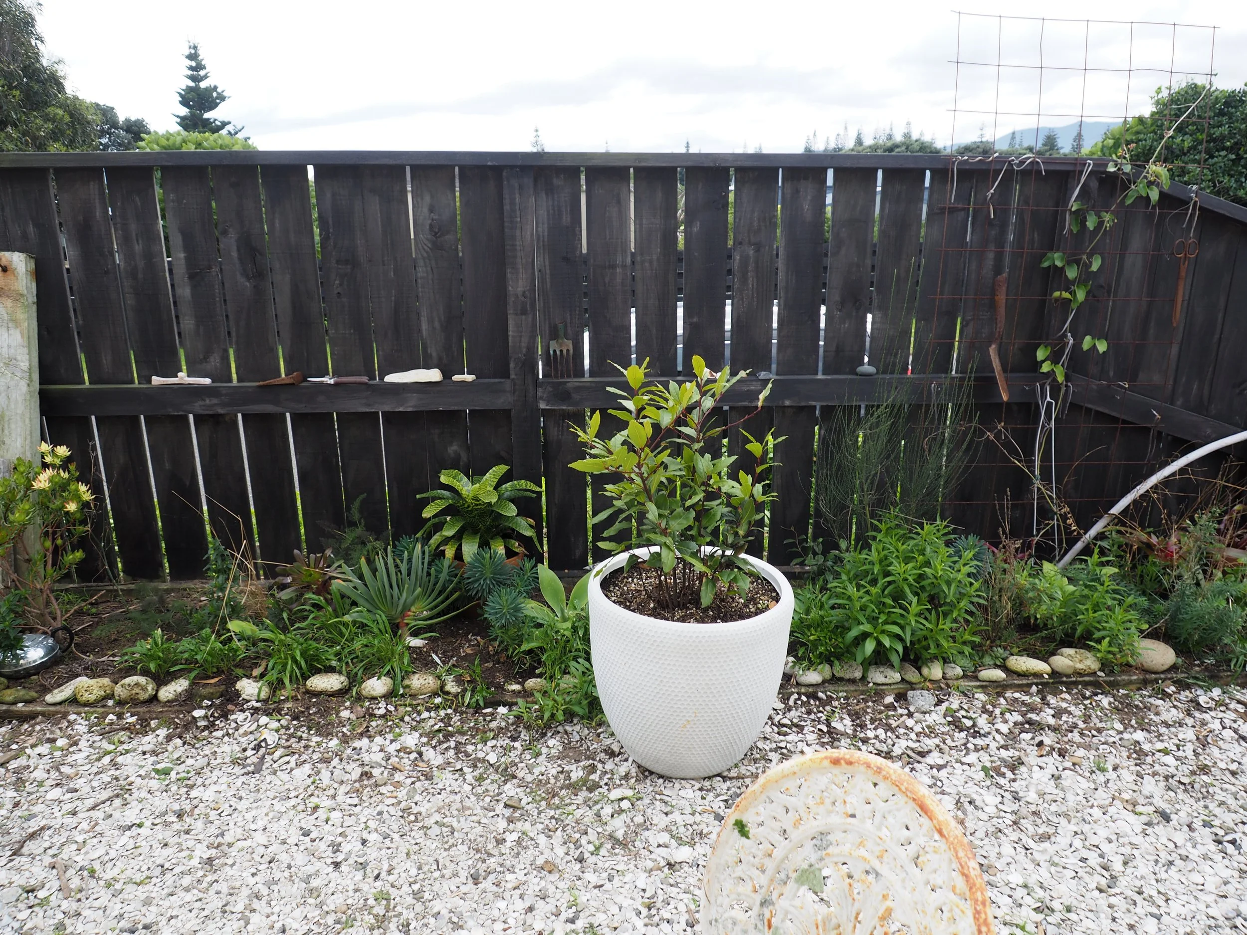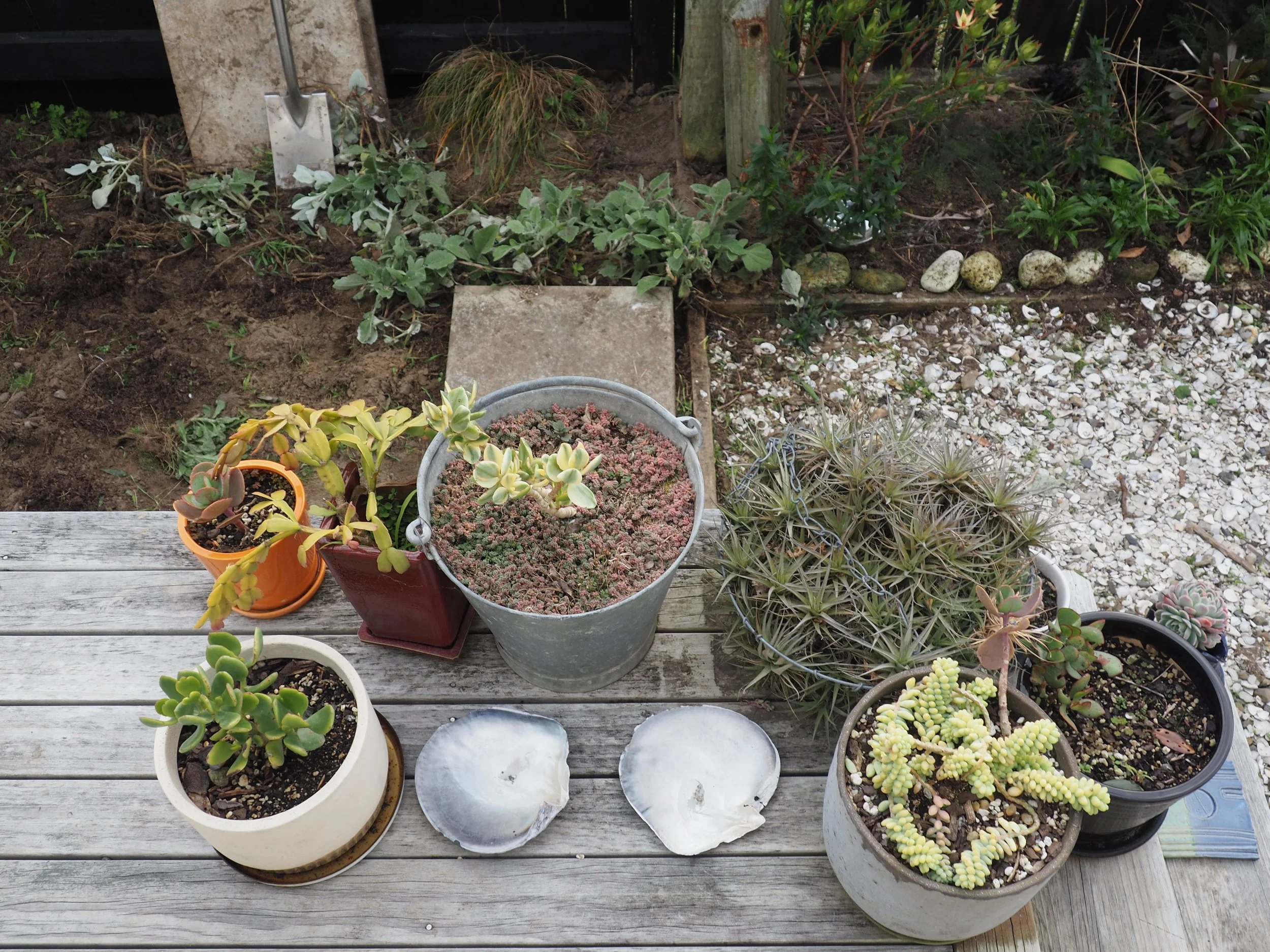 After I painted the fence I weeded the shelly courtyard. Weeding is a good way to assess a garden and its plants. As you crouch or kneel, eye-level with the plants, you get to see if they’re thriving or struggling. Most of the plants are doing well. There are only 2 I have to relocate. A clematis that hates the salty wind and a grass that hates the shade. I’m surprised how well the bromiliads in pots are doing. I’m going to buy more for the new garden, and keep them in pots.