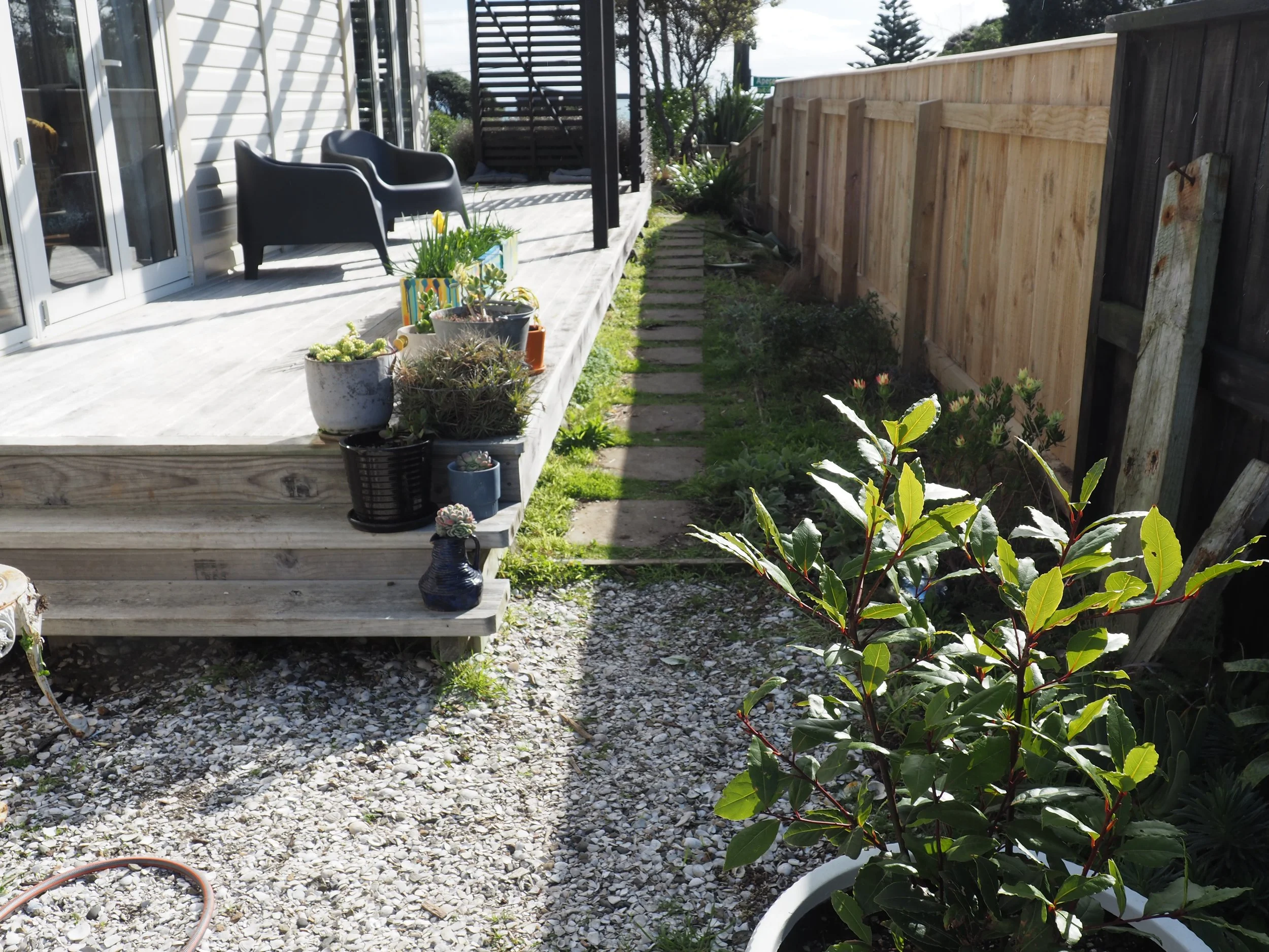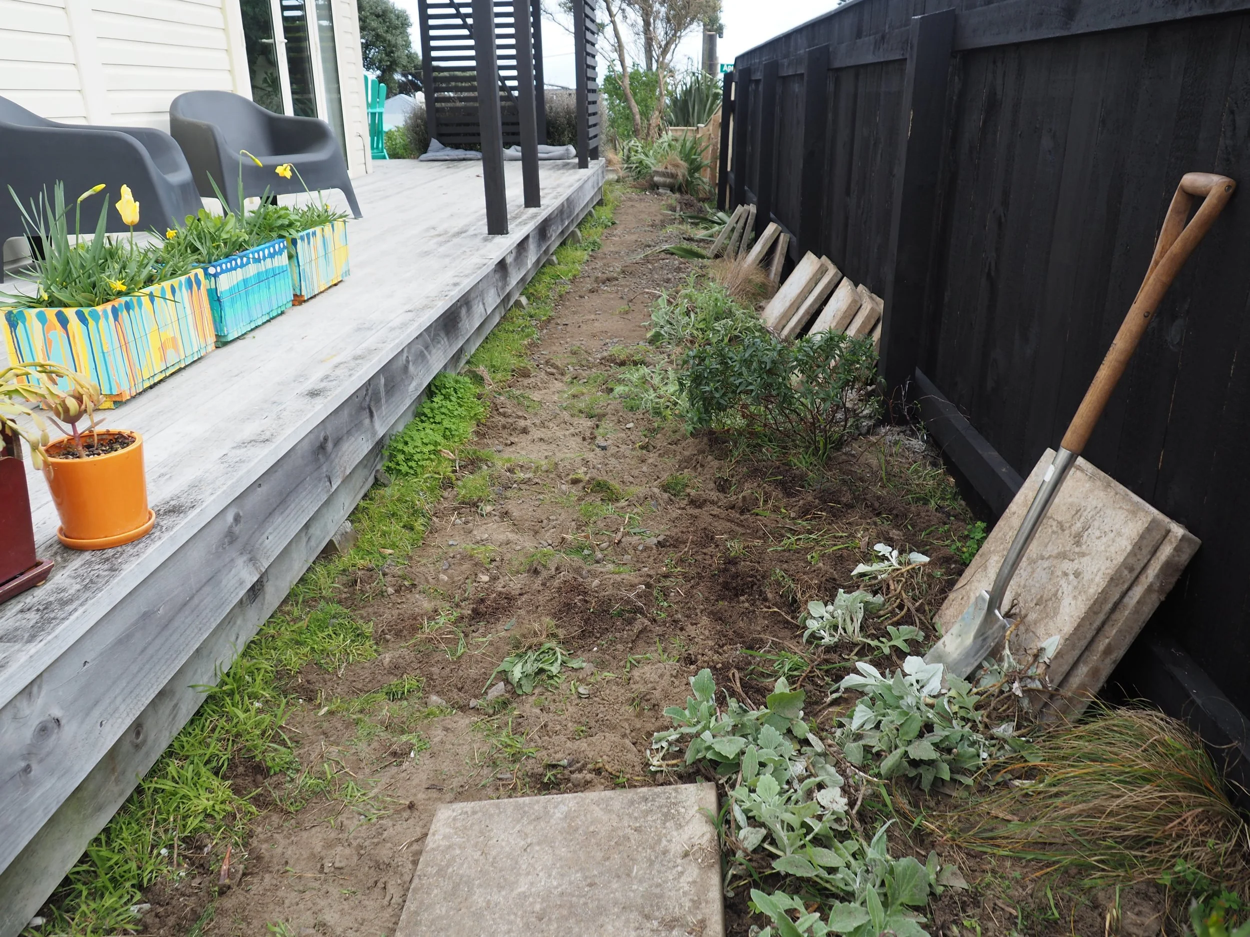 This new garden has some challenges. It’s long and narrow. It doesn't get a lot of sun (although the bit alongside the deck gets sun). The dogs will run through the middle of it so I need to make a path for them. I’ll probably put the pavers back.