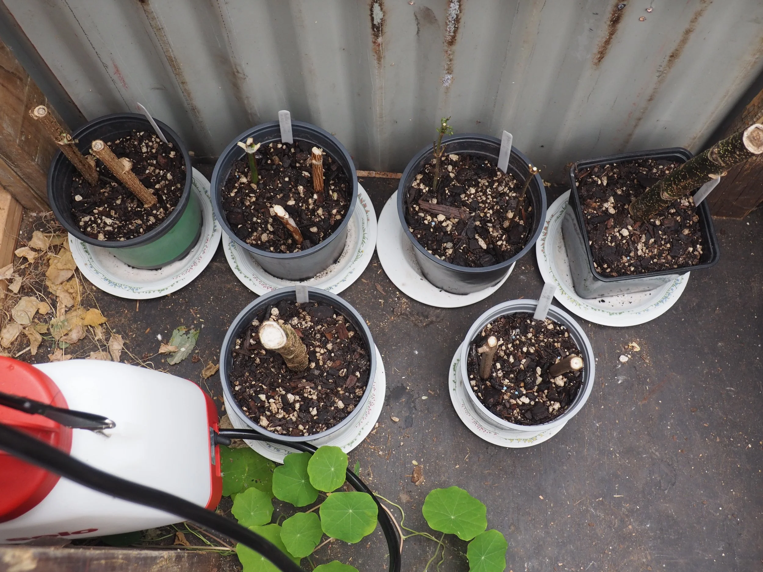 I consulted Carol Klein’s ‘Grow Your Own Garden - how to propagate all your own plants’. She puts her hardwood cuttings into a grit filled trench in her garden (True Grit). She waters them and forgets about them. I planted mine in potting mix and put them in the glasshouse. I check them everyday to make sure the soil is still moist. I can’t forget about them or they will dry out.