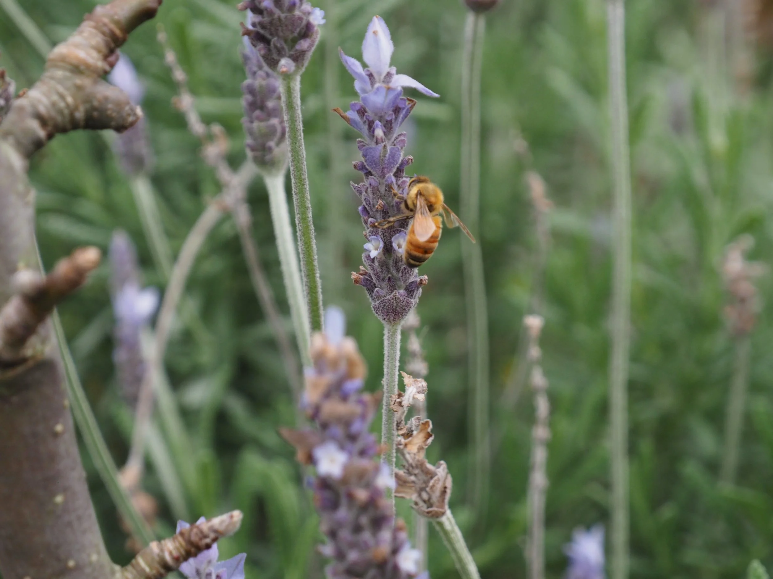 Lavandula dentata Var. Candicans, flower all year round. Bees love it.