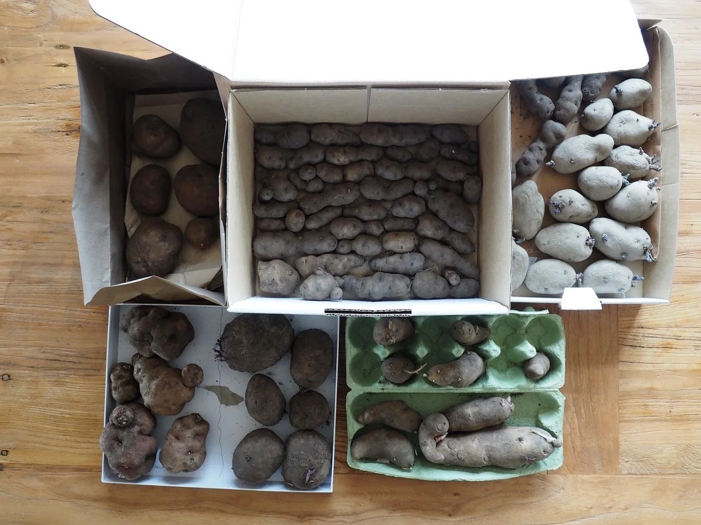 My family are potato lovers. We really appreciate a good potato: boiled, baked, mashed, sliced and baked in a dish, in a salad, soup or casserole, as chips or hash browns. This year we’re growing these varieties: Jersey Benne, Urenika, Ngati Porou, Ruby Gem, Karupaera and Yellow Fir.