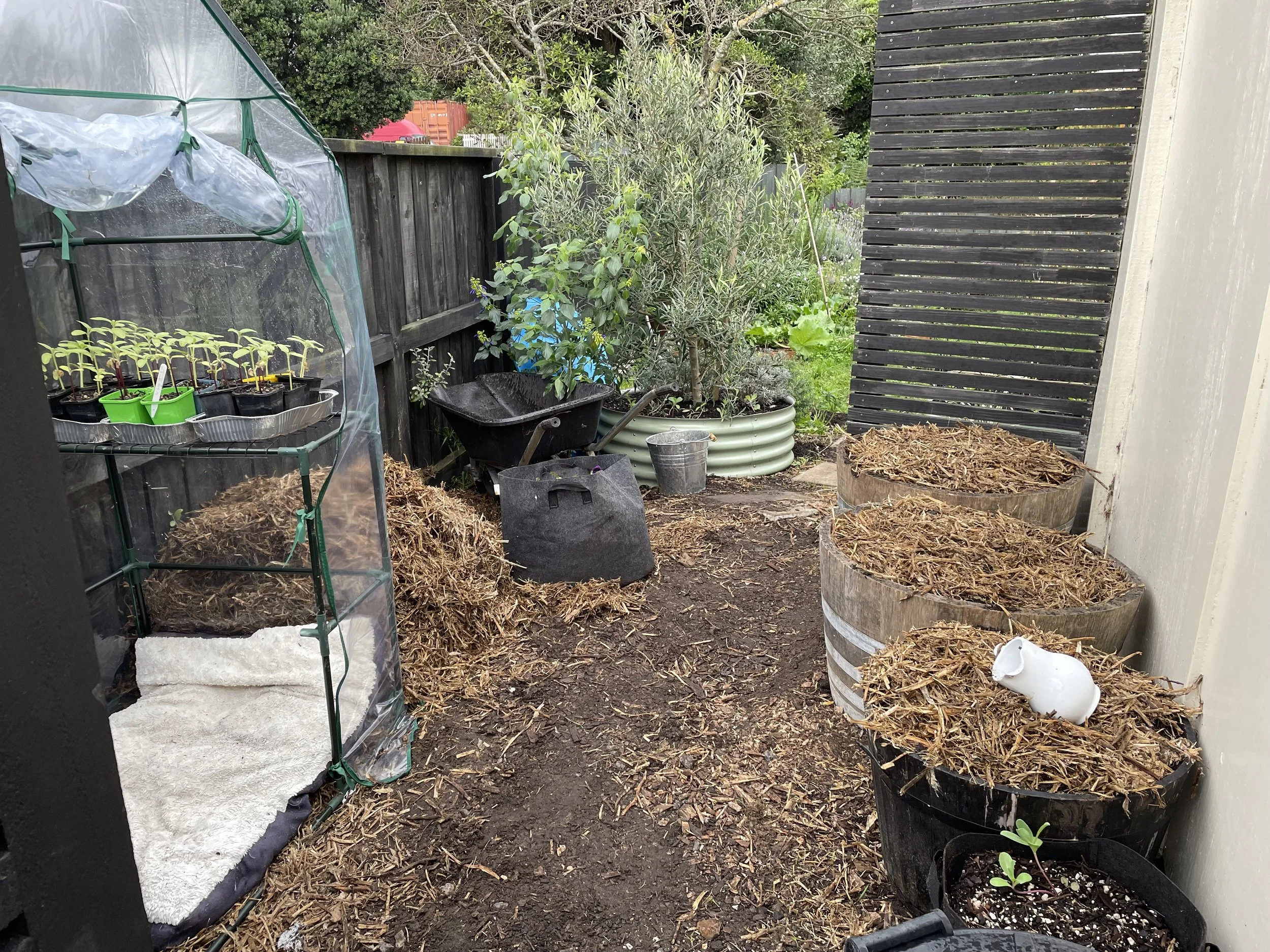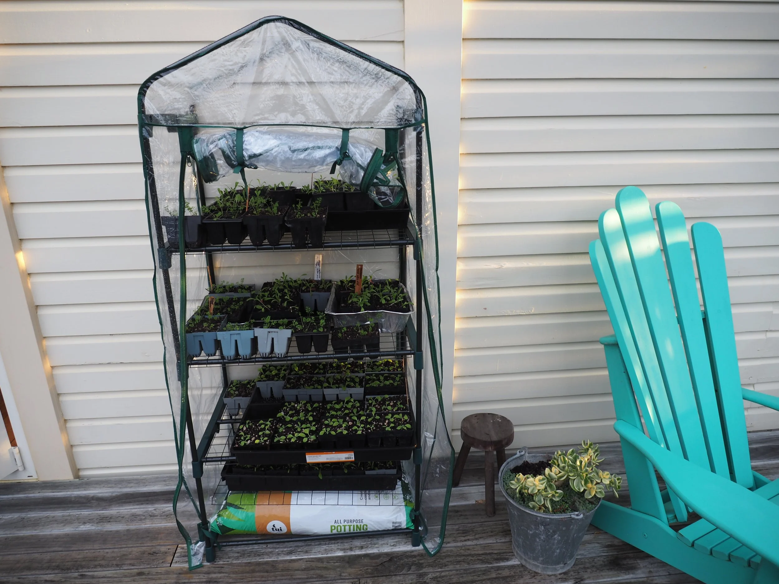 My third mini greenhouse is already full of seedlings. I think I’ll need a fourth. They’re a really good design and easy to construct. They’re good value too. I have to weight them down with a bag of potting mix so they don’t blow away.
