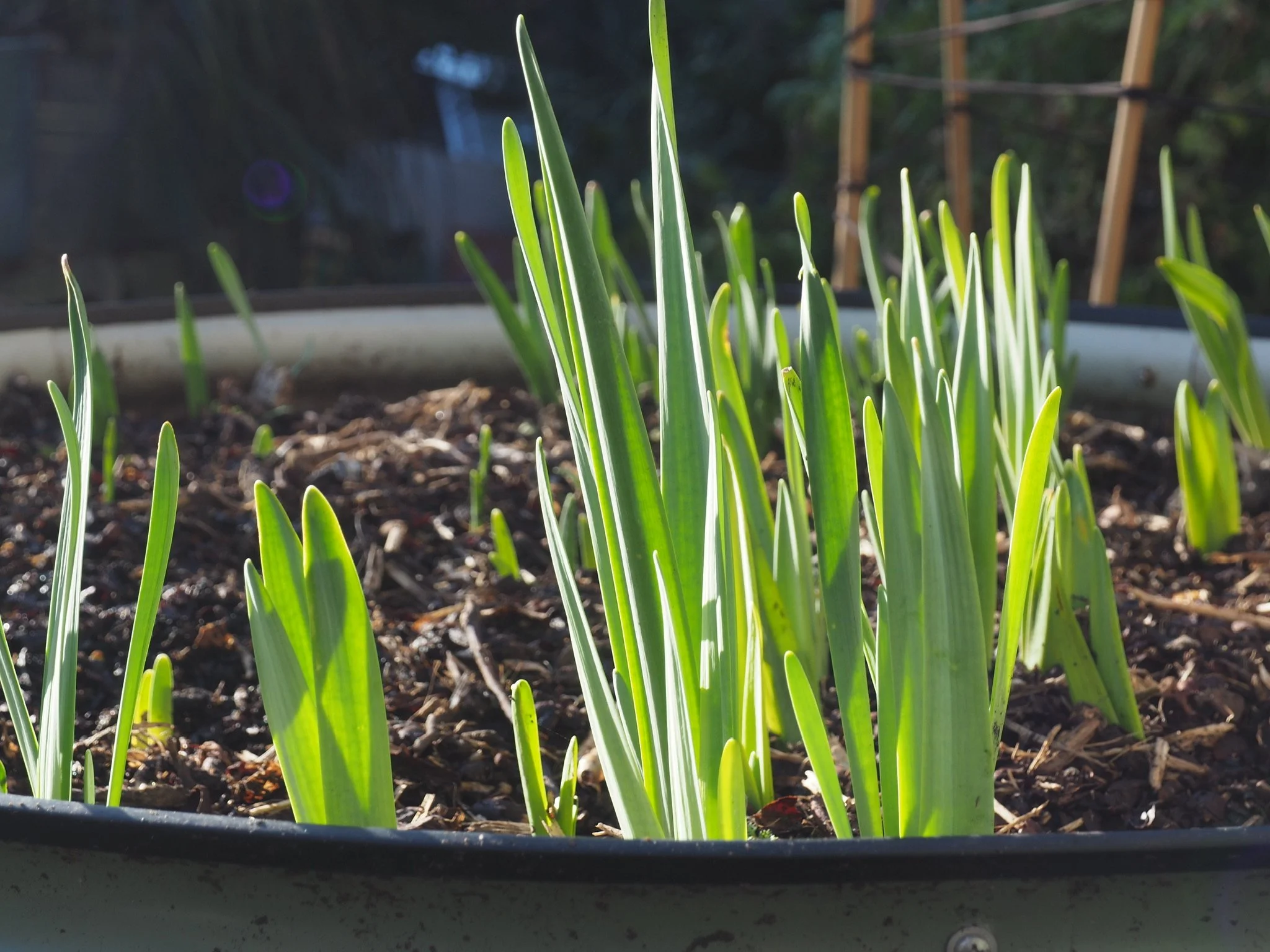 The daffodil bulbs I planted at the same time as the poppies are pushing their sword-like leaves towards the sky.