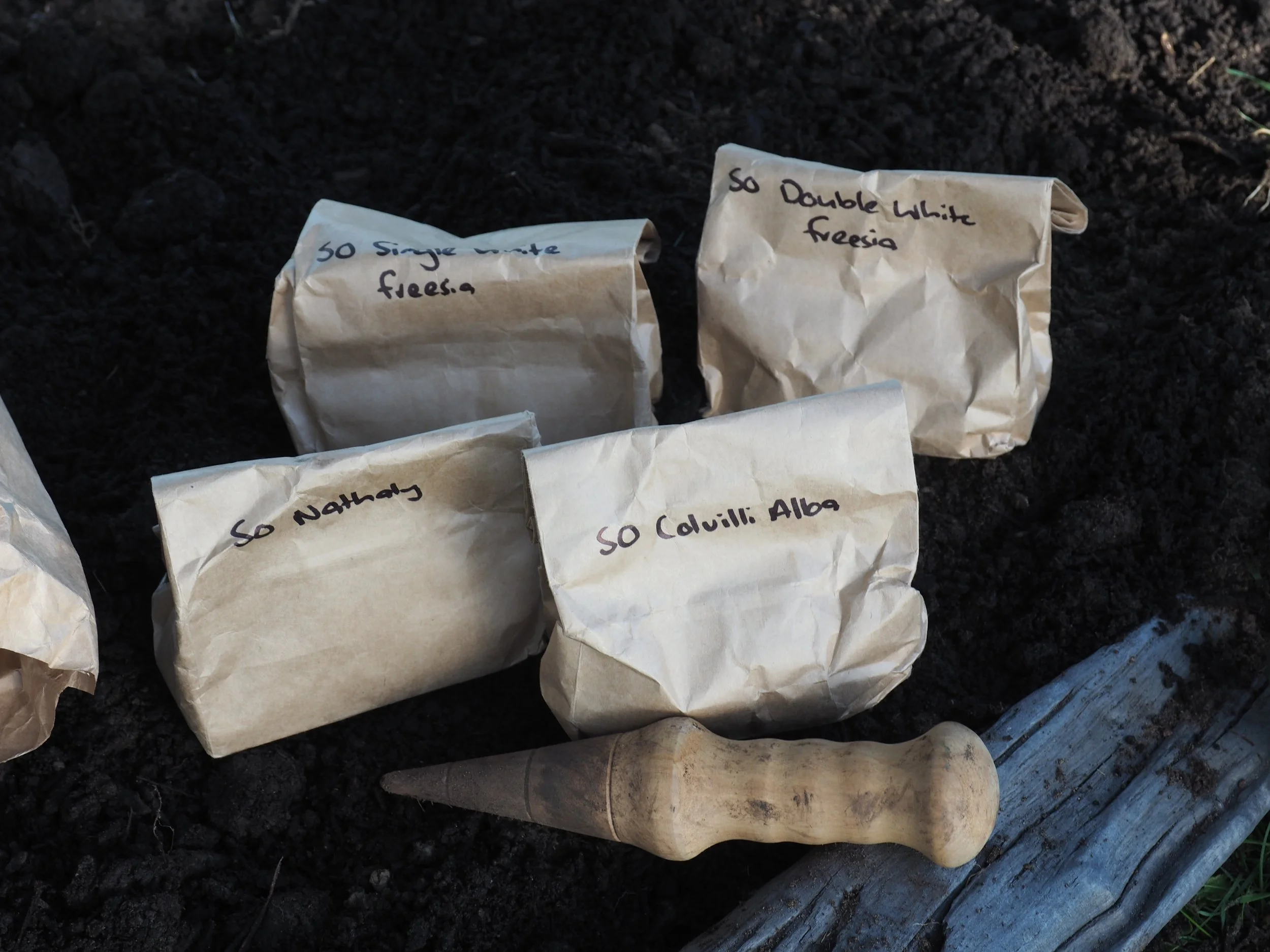 It’s also important to work out how you want your bulbs to look in the garden if you’re planting a few different varieties together. After planting all the single freesia I decided I’d rather have a mix of singles and doubles together. This too involved a bit of jiggery-pokery to sort it out.