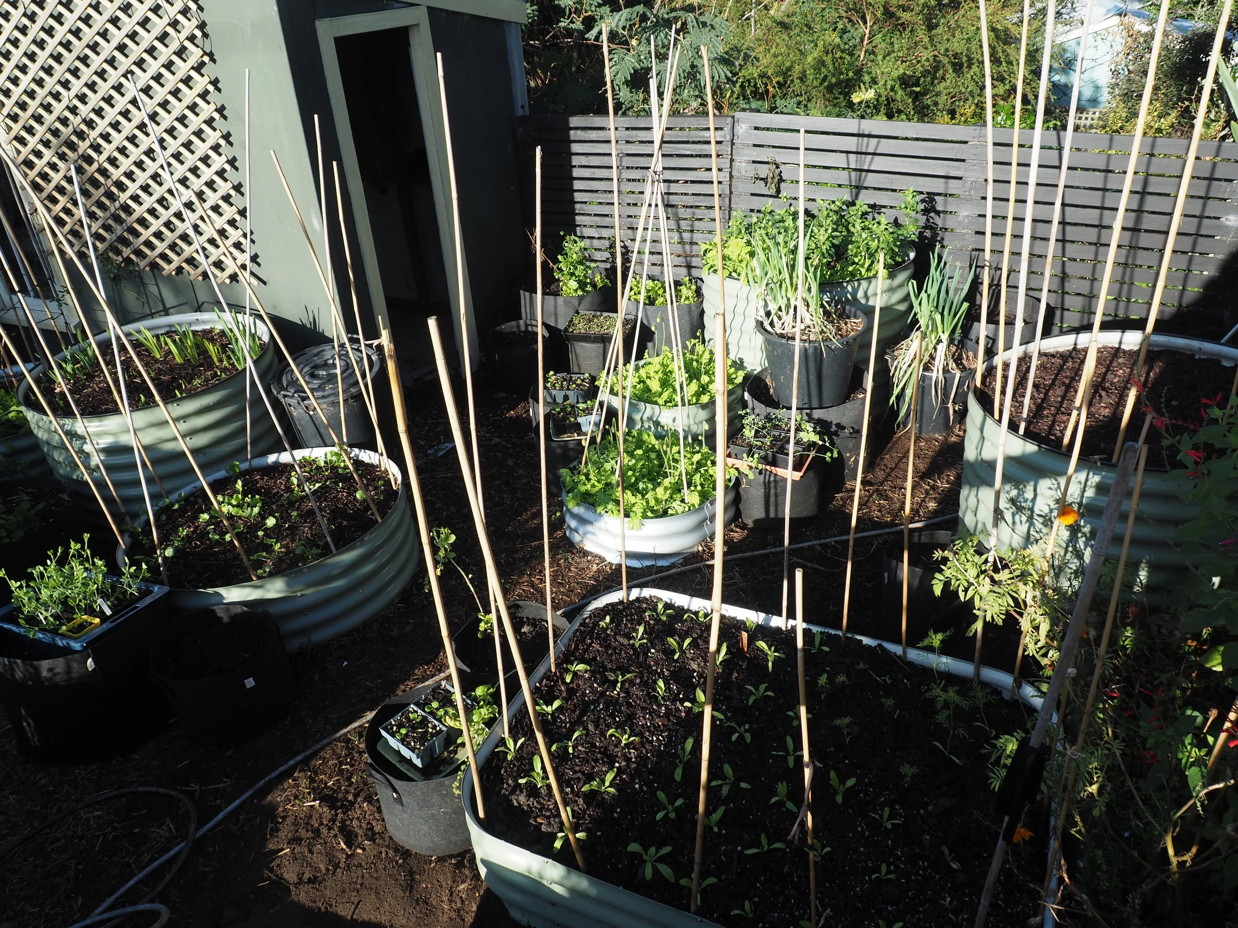 The extended garden whee the freesias and gladiolus are planted.